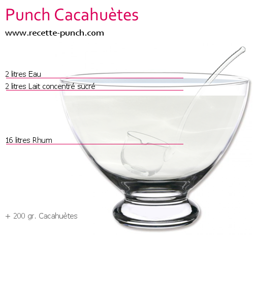 - Prendre plutot des cacahuètes décortiquées et pelées (plus facile et plus rapide à préparer). Mixer ensemble les cacahuètes le lait et l'eau, ajouter le rhum. Mélanger et verser dans un saladier. Laisser macérer plusieurs jours et conserver le au frais.